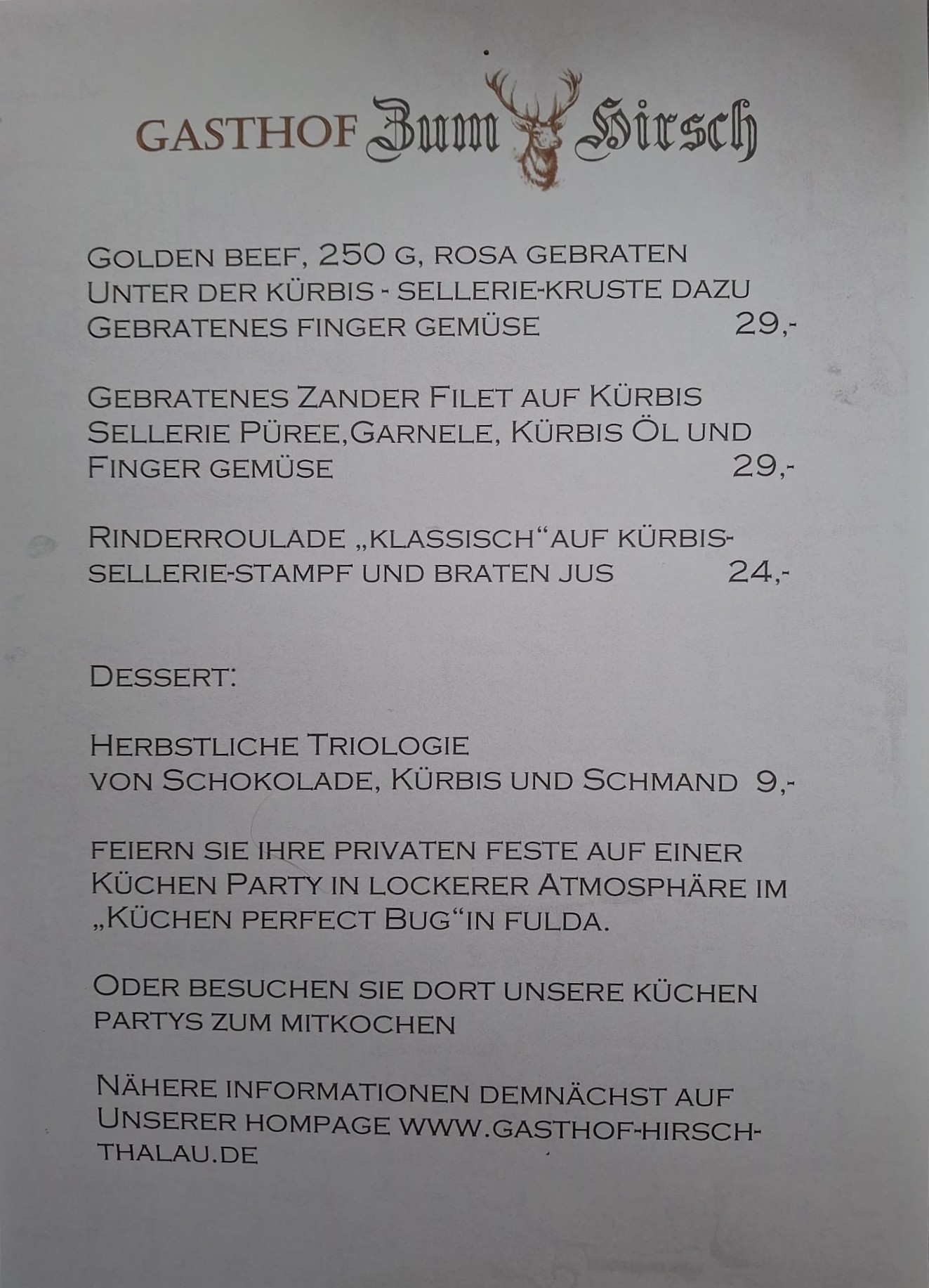 Ich erlernte mein Handwerk im Golden Karpfen in Fulda, dem ich heute für die gute Ausbildung dankbar bin. Ich bin nun schon seit Jahren in meinem elterlichen Betrieb (Gasthaus zum Hirsch in Thalau) als Küchenchef tätig.